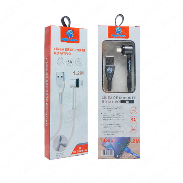 Nome Cabo de Dados e Carga Rapido Iphone 90° Rotativo 5A (RE-CBO-6156) - 1.2m