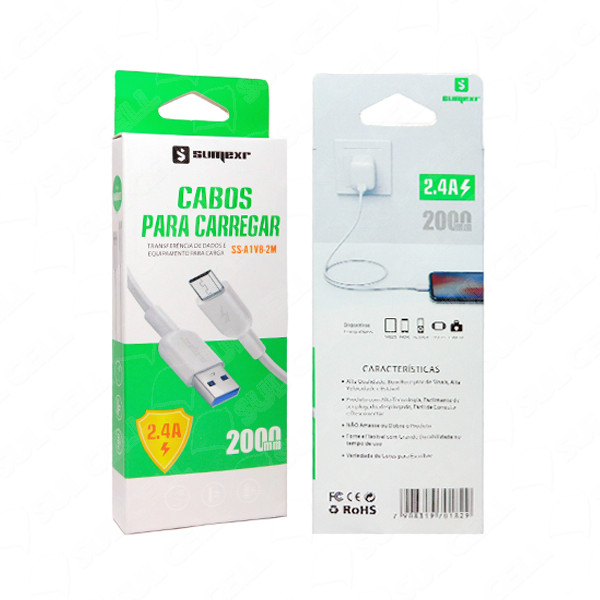 Cabo de Dados e Carga Rapido v8 2.4A Sumexr (SS-A1V8-2M) - 2m está disponível somente na quantidade mínima de 1 itens
