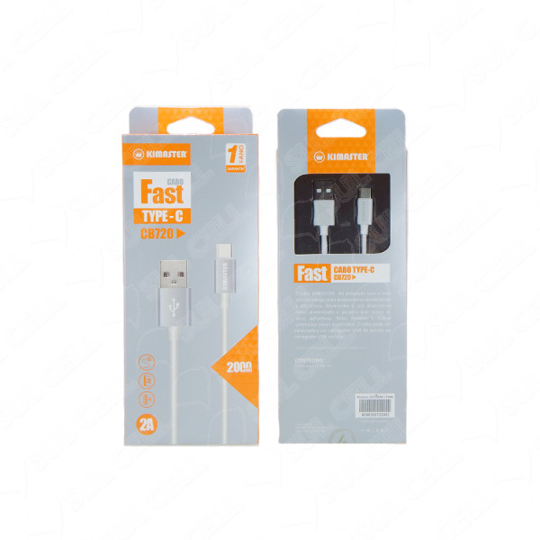 Cabo de Dados e Carga Tipo C 3A Kimaster (CB720) - 2m está disponível somente na quantidade mínima de 1 itens