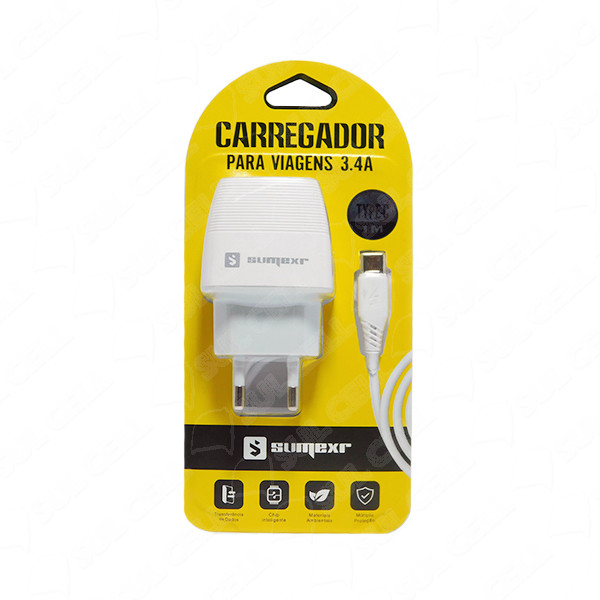 Carregador de Tomada 5v 3.4A Usb Duplo Tipo C Sumexr (SX-F15-C) - 1m