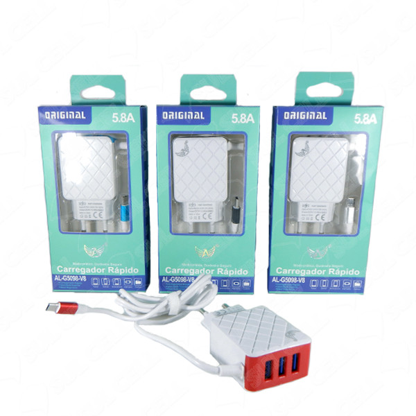 Nome Carregador Fonte de Tomada Ap Rapido v8 5v 5.8A Usb Triplo (AL-G5098)