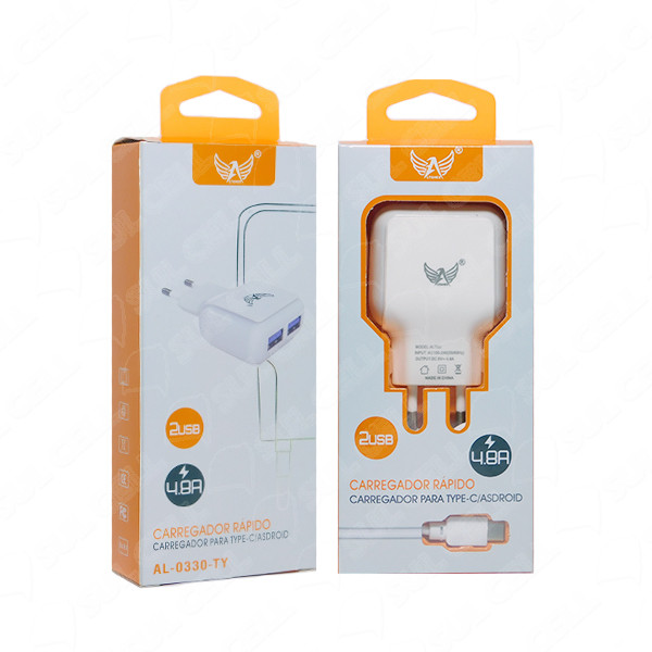 Carregador Fonte de Tomada Rapido Tipo C 5v 4.8A Usb Duplo - (AL-0330-TY)