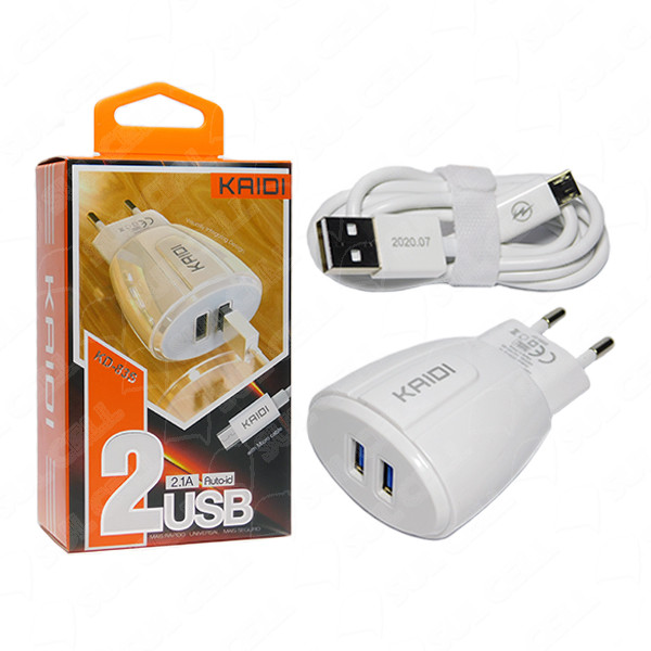 Carregador Fonte de Tomada v8 5v 2.1A Usb Duplo Kaidi (KD-83S) - 1m