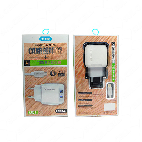 Fonte Carregador Tomada 5v 2.4A Usb Duplo Cabo Removivel v8 Kimaster (KT608X) está disponível somente na quantidade mínima de 1 itens
