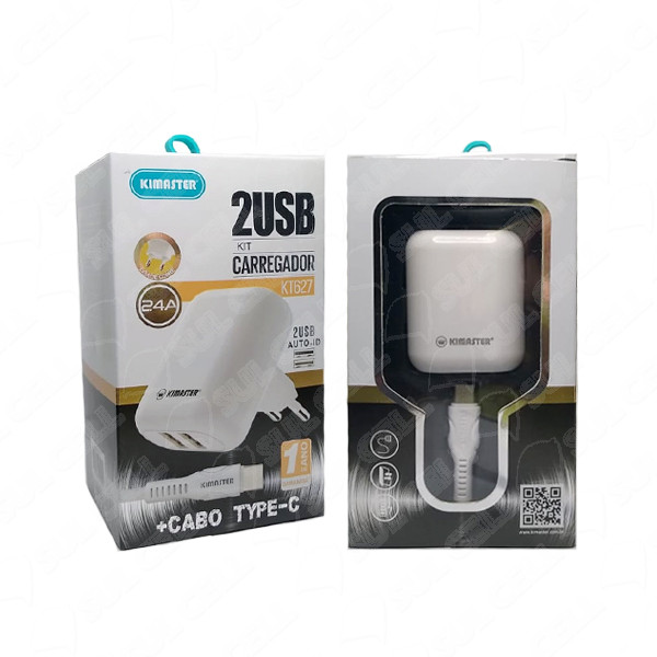 Nome Fonte Carregador Tomada 5v 2.4A Usb Cabo Removivel Tipo C Kimaster (KT627) - 1m