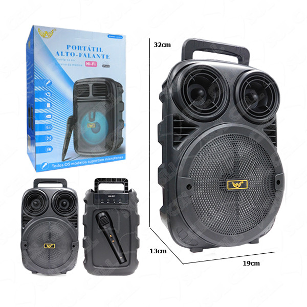 01 Caixa de Som Portatil Bluetooth e Microfone c/ fio