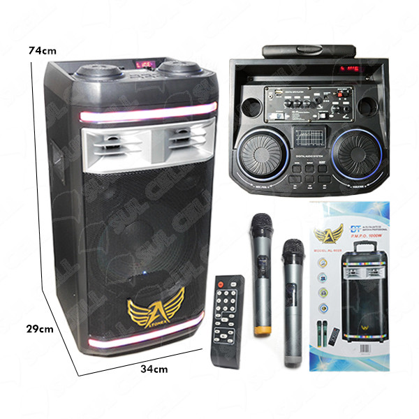 Caixa de Som Portatil Amplificada Bluetooth 1000W c/ Microfone s/ Fio (AL-9028)