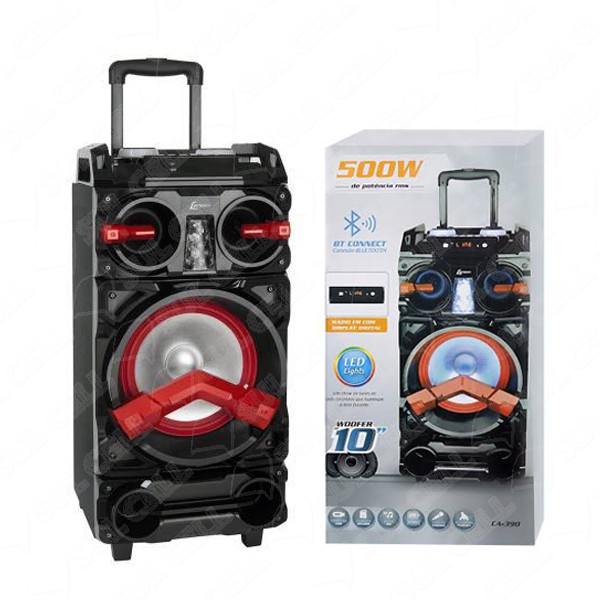 A caixa de som amplificada CA 390 da Lenoxx possui 500W de potência e é a opção perfeita para ouvir suas músicas com total liberdade. Possui conexões bluetooth, USB e Micro SD, bateria recarregável e função karaokê para deixar seus eventos ainda mais animados. Além disso, a caixa de som é portátil facilitando seu transporte e fabricada na cor preta com detalhes em vermelho combinando com qualquer ambiente.