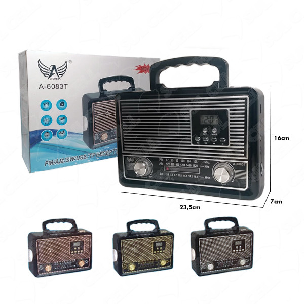 Radio Retro Caixa de Som Portatil Bluetooth Recarregavel c/ Alça (A-6083T) está disponível somente na quantidade mínima de 1 itens