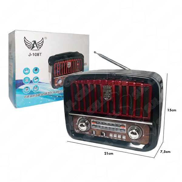 Radio Retro Caixa de Som Portatil Bluetooth Recarregavel c/ Alça (J-108T) está disponível somente na quantidade mínima de 1 itens