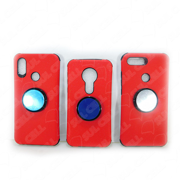 Capa TPU Com Brilho Colorida C/ PopSocket Motorola Moto G7 Play Vermelha Col 228