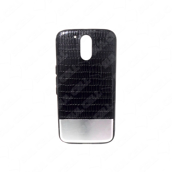 Capa TPU Couro Moto G4 Plus Azul Marinho C/ Prata Col 118