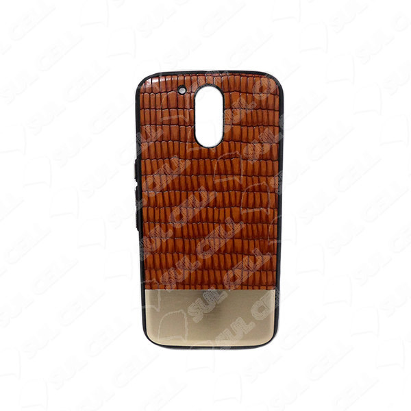 Capa TPU Couro Motorola Moto G5 Caramelo C/ Dourada Col 118