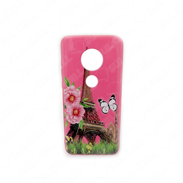 Capa TPU Desenho Torre Eiffel Borboleta Motorola Moto G7 Plus Rosa Col 114