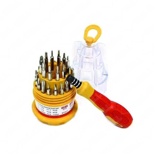 Contém todos os principais tipos de chave: Philips, Fenda, Y, Allen e Torx.