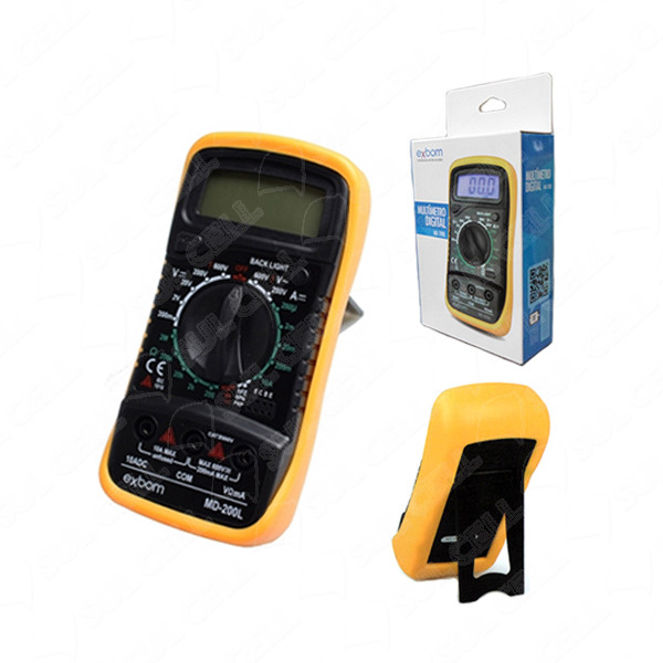 O Multímetro MD-200L é um instrumento digital portátil, com fusível de auto restauração, teste de linha viva, holster protetor, LCD de 3 ½ dígitos , de acordo com a categoria II de segurança, congelamento de leitura, mudança de faixa manual. Realiza medidas de tensão DC e AC, corrente DC e AC, resistência, capacitância, freqüência, temperatura e testes de linha viva, hFE de transistor, diodo e continuidade.