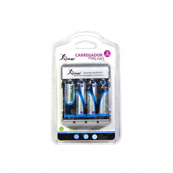 Nome Carregador de Pilha AA AAA 9V c/ 4 Pilhas Recarregavel AA (KP-511AA)