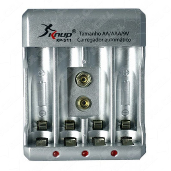 Nome Carregador de Pilha p/ 04 Pilhas AA/AAA e Bateria 9v (KP-512)
