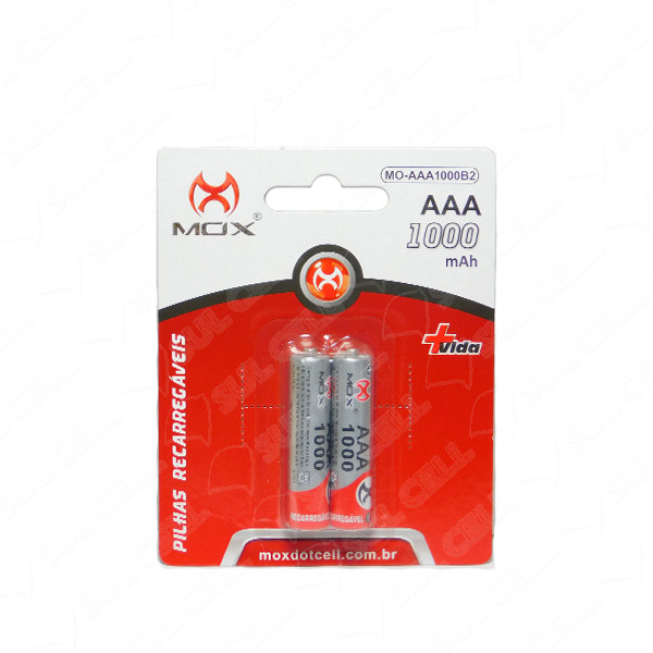 Nome Pilha Recarregavel AAA 1.2v 1000mAh Mox - Cartela c/ 2 Pilhas (MO-AAA1000B2)
