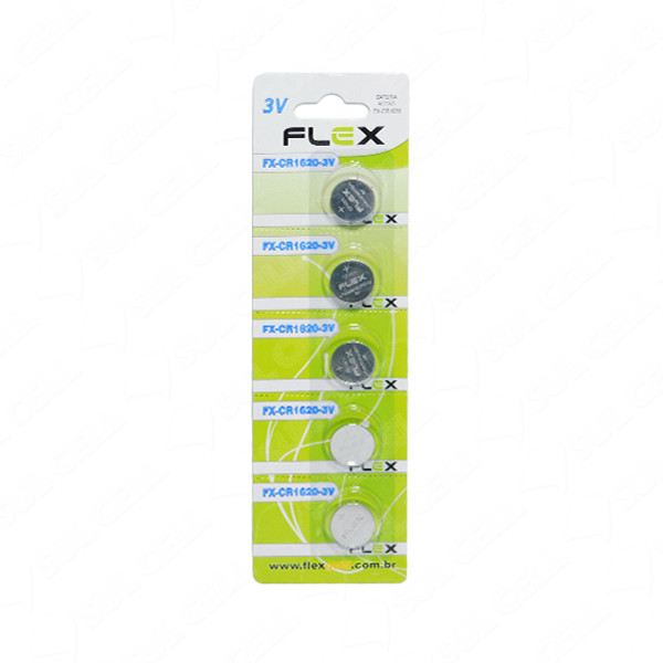 Bateria Lithium CR1620 3v Flex - Cartela c/ 5 Pilhas (FX-CR1620)
