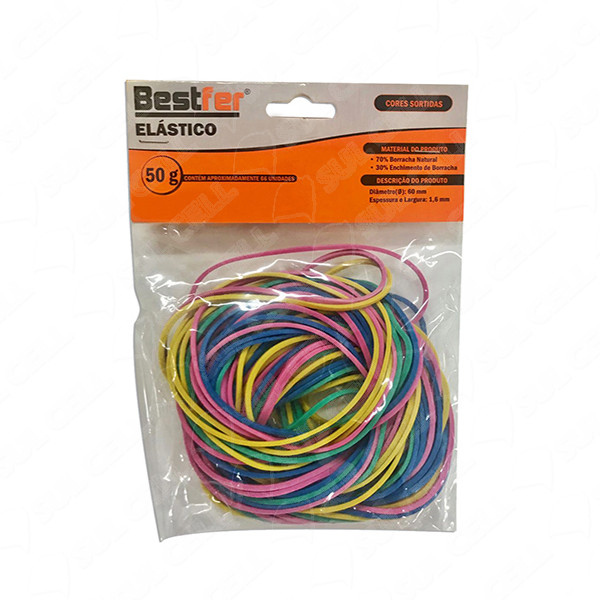 Elastico Borracha Atilho Pct 50g - Colorido (BFH1698) está disponível somente na quantidade mínima de 1 itens